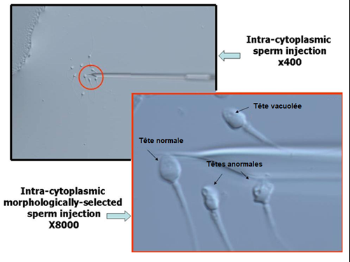 L’IMSI (Intracytoplasmic Morphologically-selected Sperm Injection) consiste à observer les spermatozoïdes à un fort grossissement (x6000 minimum contre x400 pour une ICSI classique), afin de sélectionner et injecter des spermatozoïdes de bonne morphologie (dépourvus de vacuoles au niveau de la tête ou autres anomalies cellulaires).